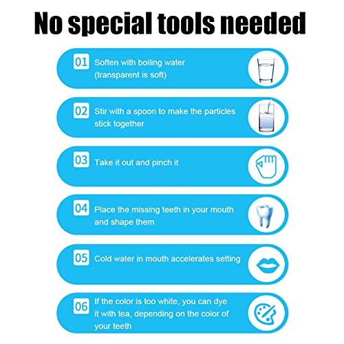 Artikeltype: Tijdelijke tandreparatieset Materiaal: Speciaal kunststof van voedingskwaliteit