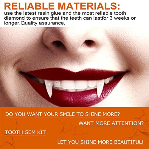 ⇖[Perfect voor feesten] Ontworpen met een glanzende afwerking, Teeth Gems Kit met lijm en licht is ideaal voor enge feestartikelen, maskerade rekwisieten en cosplay kostuumaccessoires, reflecterend licht dat naar buiten valt.