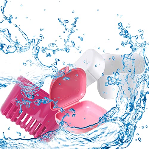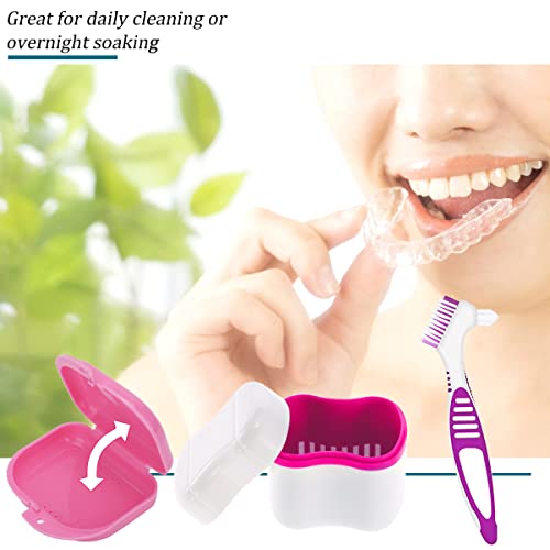 HONGECB Tandprothese-box, prothesenhouder, prothesebeker, prothesebox, tandprothesen houder met zeef, met prothesen reinigingsborstels, voor het bewaren van verkeerde tanden, roze.