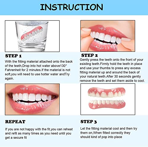 Instant Whitening: het kunstgebit is ontworpen met ultradunne vouwtechnologie, de voorkant van het kunstgebit ziet eruit als een perfecte set tanden en tandvlees, natuurlijke fineer laat u een mooie glimlach hebben zonder naar de tandarts te gaan. maak je tanden mooier, geschikt voor zowel mannen als vrouwen.