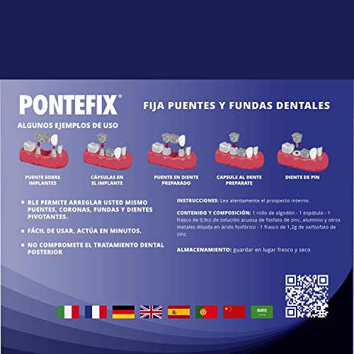 Cement maakt het mogelijk om bruggen, kronen, capsules en taptanden zelf te fixeren. ◦ Eenvoudig in gebruik, werkt in een paar minuten. De latere behandeling van de tandarts PONTEFIX is een tijdelijk cementbeton voor tandbruggen op basis van zinkoxyphosfaat dat het mogelijk maakt om bruggen en tandcapsules zelf te repareren. Dankzij de speciale formule kunnen tandbruggen, kronen, bouttanden en capsules van elk type materiaal tijdelijk zelf en in korte tijd worden geplakt. Eenvoudige en snelle bevestiging van tandbruggen en tandcapsules.