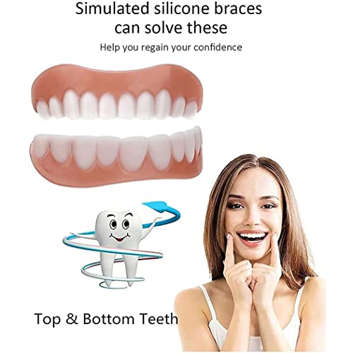 Specification: Siliconen kunstgebit bovenkant en onderkant verwijderbare natuurlijke tijdelijke valse tanden tandfineer valse tanden, 1 paar