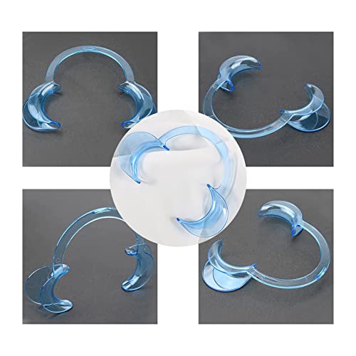 Wegwerp-wangrekker, C-vorm om te openen, mondstuk, mondopening, tandbleken, 4 stuks (L, blauw)
