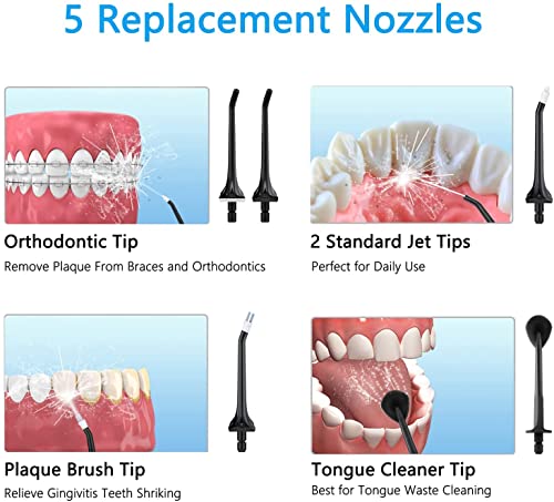 ✅【5 sproeiers voor het hele gezin】 De Turewell monddouche wordt geleverd met gewone hogedrukopzetstukken in 2 verschillende kleuren en 3 andere waterstraalopzetstukken voor speciale doeleinden. Je kunt met je hele gezin delen. Met deze 360 graden sproeiers heb je eenvoudige toegang tot alle delen van de mond om tandsteen, etensresten tussen tanden en tandvlees grondig te verwijderen.