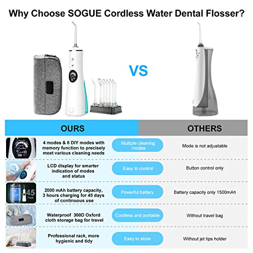 Specification: Water Flosser Cordless Advanced Monddouche LCD scherm, 260ML watertank Monddouche Elektrisch met 5 modi, DIY, 7 sproeiers, professionele IPX7 waterdichte, monddouche-tandreiniger