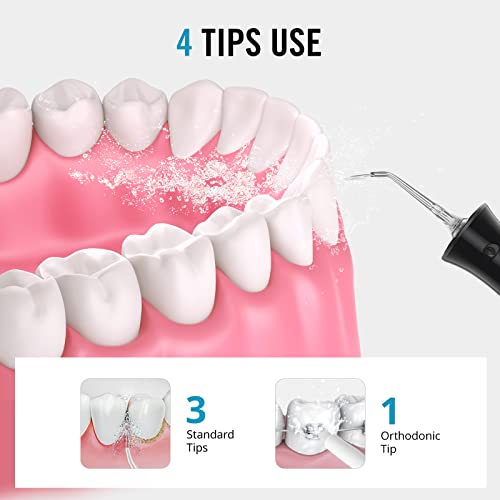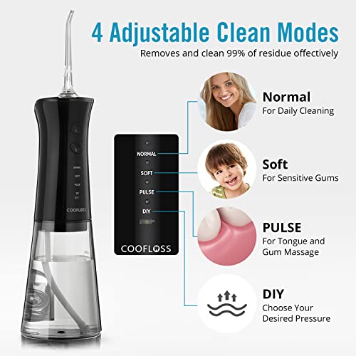 【4 Flosmodi】De waterflosser veren 4 reinigingsmodi: normaal, zacht, pulserend en doe-het-zelf. Met de doe-het-zelf-modus en de geheugenfunctie kunt u de waterdruk van uw voorkeur kiezen.