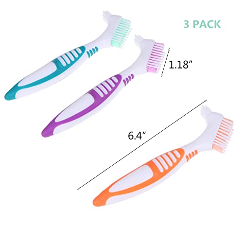 3 Stks Kunstgebit Reiniging Borstels Valse Tanden Reinigingsborstel Kunstgebit Dubbelzijdige Borstel Multi-Layered Borstels Borstel Draagbare Borstel voor Valse Tanden, 3 Kleuren