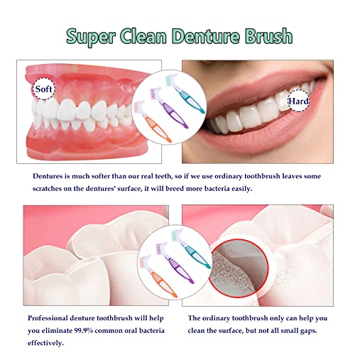 Matige borstelharen: stijfheid en elasticiteit zachte borstel, niet gemakkelijk te vervormen; onze borstel is matig zacht, geweldig voor het reinigen van kunstgebitten, maak je geen zorgen dat het kunstgebit zou beschadigen