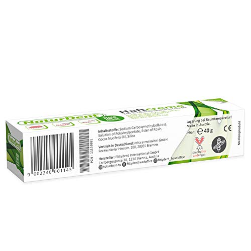 Naturdent kleefcrème – de eerste natuurlijke kleefcrème – onoplosbaar in water – niet spoelen, slechts eenmaal per dag – 100% voedselingrediënten, veganistisch, geen chemische belasting op het lichaam 40 g