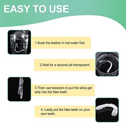1. De cosmetische tanden zijn alleen om u te helpen onmiddellijk uw tanden uiterlijk te verbeteren, Let op dat u dit product niet gebruikt bij het sporten, roken, eten of het drinken van warme dranken.