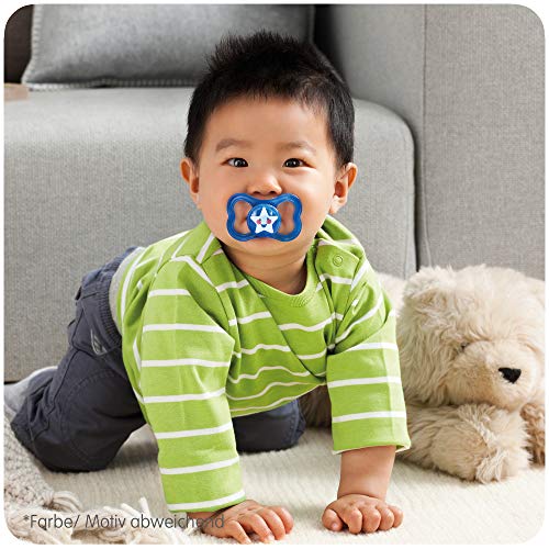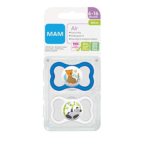 Specification: MAM Air siliconen fopspeen in een set van 2, extra licht & luchtig babyspeen, tandvriendelijke speen van speciale MAM SkinSoft-siliconen met doosje, 6-16 maanden, blauw
