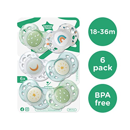 Specification: Tommee Tippee Grappige fopspenen, orthopedisch, symmetrisch, siliconen, BPA-vrij, 18-36 maanden, 6 stuks