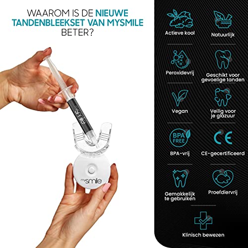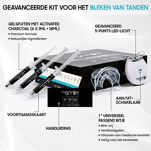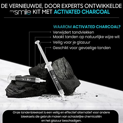 mysmile tandenbleekset – Tandenbleker om zelf tanden te bleken met activated charcoal – Zonder peroxide en verrijkt met natuurlijke ingrediënten – Teeth Whitening Kit tegen gele tanden