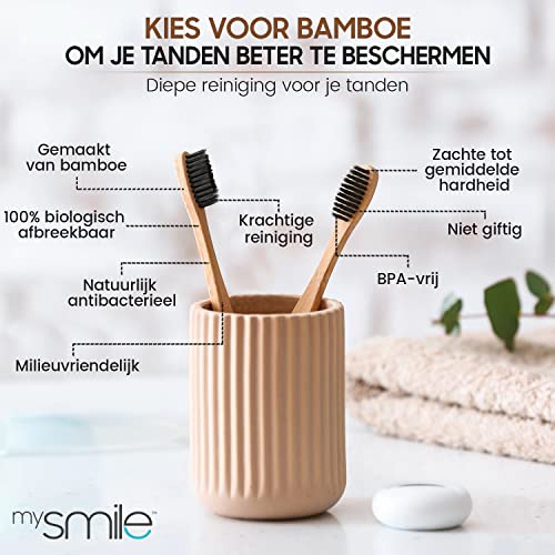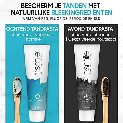 mysmile Whitening Tandpasta Tandenbleekset met bamboe tandenborstel – Natuurlijk thuis tanden bleken – Vrij van peroxide – Ideaal tegen vlekken – 2 x 60 ml en 2 bamboe tandenborstels