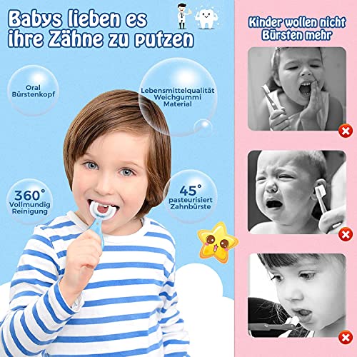 【360° uitgebreide verzorging】Kan de tanden 360 graden poetsen en reinigen, speciaal voor delicate en gevoelige tanden van kinderen. 360° volledige afdekking om ervoor te zorgen dat de tandreiniging de mond niet beschadigt. Het speciale ontwerp zorgt ervoor dat de baby gezond tandvlees en tanden heeft.