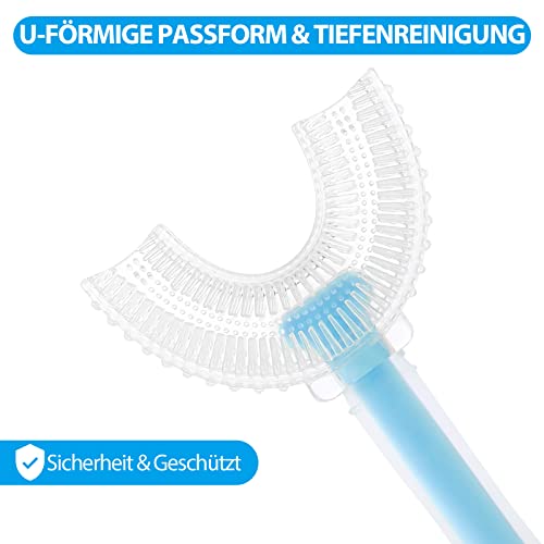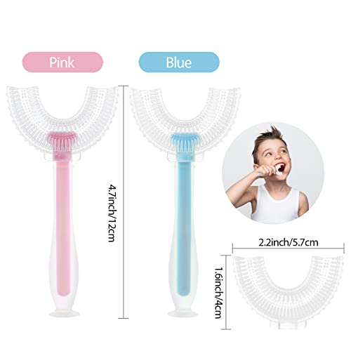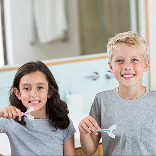 U-vormige tandenborstel voor kinderen, 2 stuks, handmatige U-vormige tandenborstel, met 2 stuks afneembare zachte siliconen borstelkop, 360 graden orale tandenreiniging voor kleine kinderen (6-12 jaar oud)