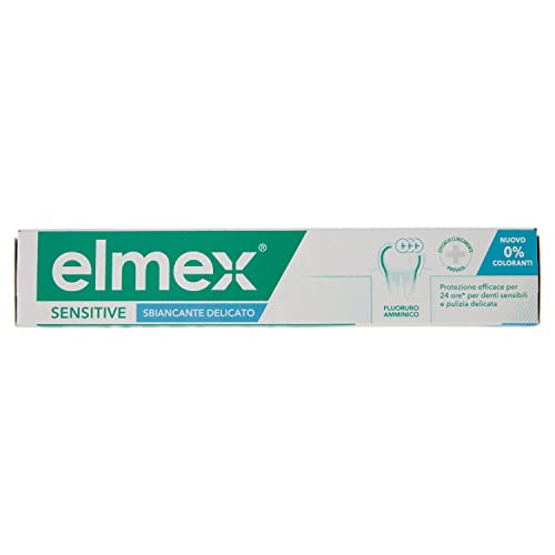 Elmex Sensitive Whitening tandpasta met aminefluoride is een speciale tandpasta voor de dagelijkse bescherming van gevoelige tanden. Elmex Sensitive Whitening biedt een drievoudige effectieve werking en een klinisch geteste bescherming voor gevoelige tanden bij continu gebruik door de tanden tweemaal per dag te wassen. Bovendien verwijdert de reinigingsformule zacht en effectief vlekken, wat helpt om het natuurlijke witheid van de tanden te herstellen.