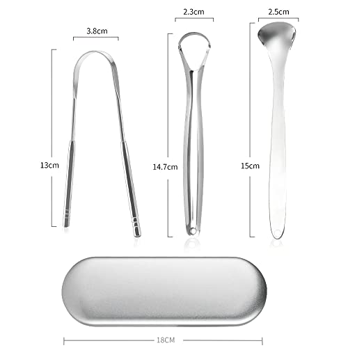 Specification: XiXiRan tongschraper van roestvrij staal, tongreiniger, roestvrij staal, tongschraper voor volwassenen, tongreiniger van metaal met behuizing (3-delige set)