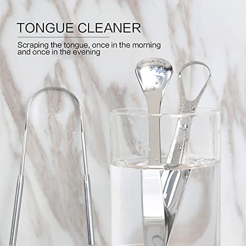 4. 【3 vormen】3 soorten tongschrapers en opbergdoos van metaal, eenvoudig te bedienen, op te bergen en te dragen om aan je verschillende mondreinigingsbehoeften te voldoen. Het ontwerp met ophanggaten vergemakkelijkt het wassen en drogen.